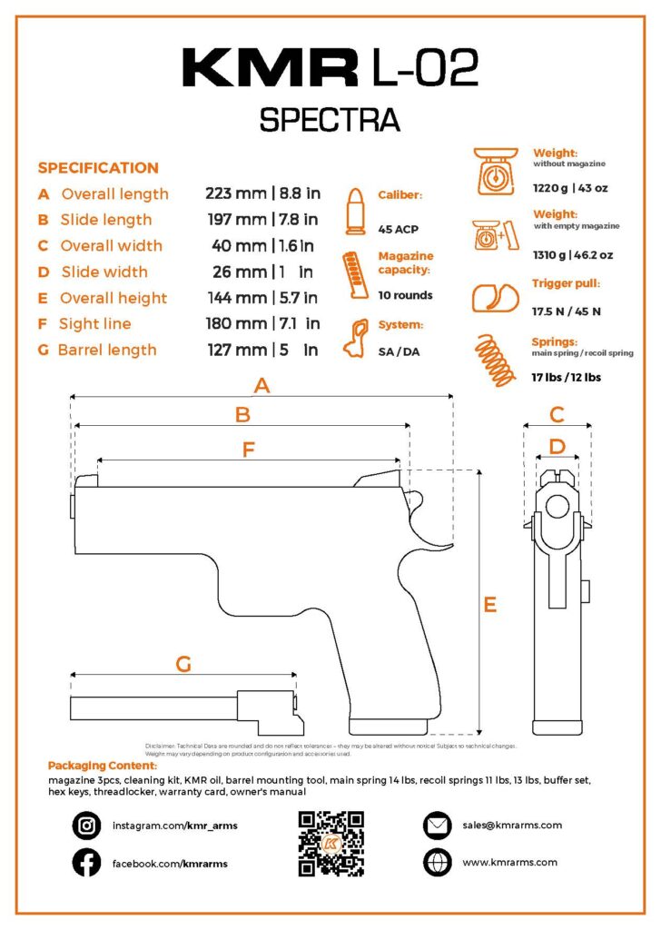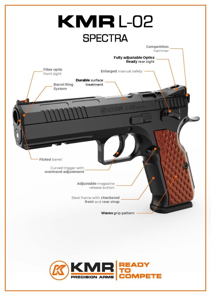 Ești profesionist, amator sau un trăgător „de duminică” și vrei să te bucuri de distracția oferită de un calibru mare? Dacă da, KMR L-02 SPECTRA OR în .45 ACP este alegerea potrivită. Așa că fii PREGĂTIT SĂ CONCUREZI!