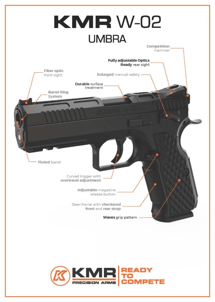 Mic, dar puternic. Ați auzit bine, vorbim despre KMR W-02 UMBRA OR. Cu acest pistol compact nu vă veți pierde în competiție; dimpotrivă, puteți surprinde.