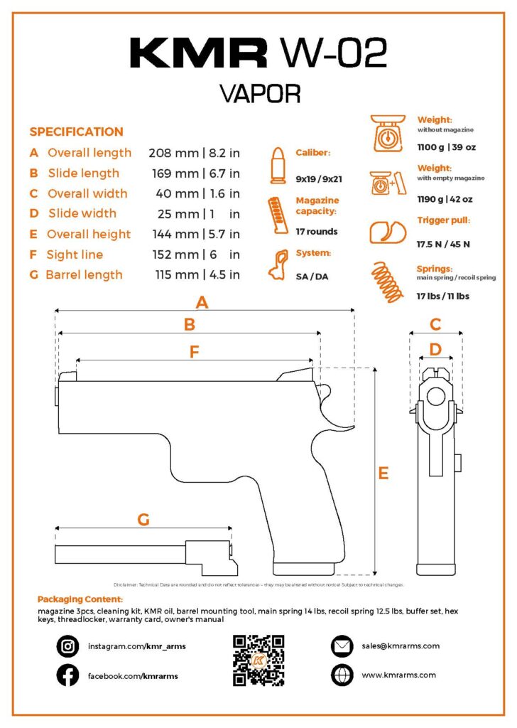 Datorită gamei largi de accesorii KMR și sistemului de stabilizare a țevii BRS, KMR W-02 VAPOR este o alegere versatilă care te va face întotdeauna PREGĂTIT SĂ CONCUREZI!